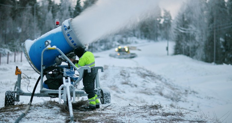 Laskettelurinteet toimivat tykkilumen varassa. Luonnonlumi ei ole riittävän kestävää talven vaihtelevissa sääoloissa.